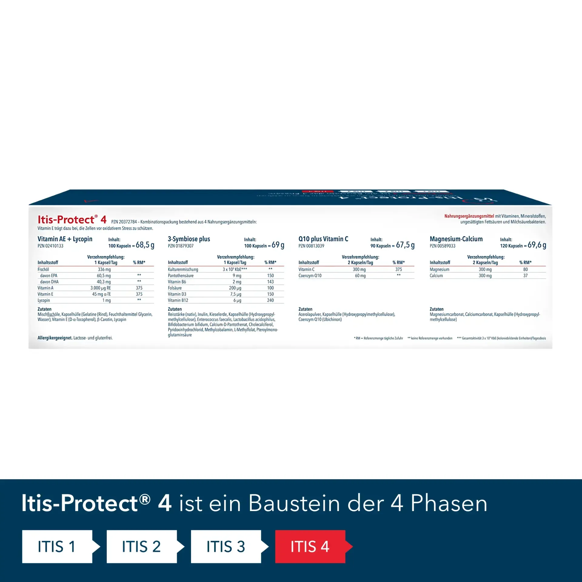The product information according to Regulation (EU) No 1169/2011 and the complete spectrum of effectiveness of the micronutrients contained in Itis-Protect® IV can be found in the details of the respective individual products:
